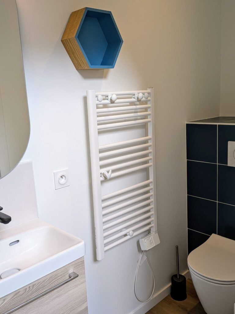 La chambre Côté mer est une chambre lumineuse et reposante, pensée pour offrir un véritable moment de calme et de déconnexion.